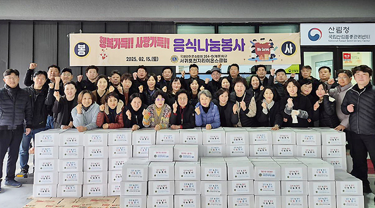 서귀포천지라이온스클럽(회장 강병철)은 지난 15일 클럽 회관 1층 주차장에서 이웃 나눔 실천을 위해 '사랑가득! 행복가득! 음식나눔봉사활동'을 펼쳤다.
