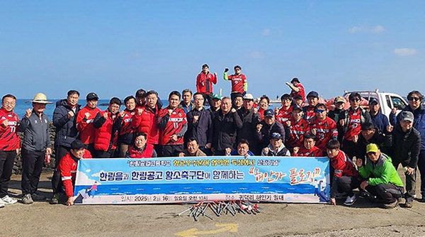 [한라일보] 제주시 한림읍(읍장 김동옥)과 한림공고 황소축구단(단장 김희종)은 지난 16일 회원 40여 명이 참여한 가운데 한림읍 귀덕리 해안가 일대를 걸으며 쓰레기를 줍는 플로깅 활동을 벌였다.