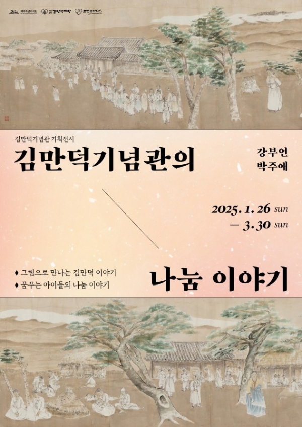 김만덕기념관의 기획전은 두 개의 주제로 나눔의 정신을 알리고 있다. 기념관 1층 기획전시실에선 '그림으로 만나는 김만덕 이야기'를 주제로 조선 후기 제주 출신 여성 상인인 김만덕의 생애를 조명한다. 강부언 작가의 섬세하고 생동감 넘치는 한국화 작품이 김만덕의 삶과 나눔의 정신을 쉽고 깊이 있게 안내한다. 강 작가는 2000년 제주시가 주최한 '김만덕 일대기 그림 응모작'에 선정됐던 인물이다.