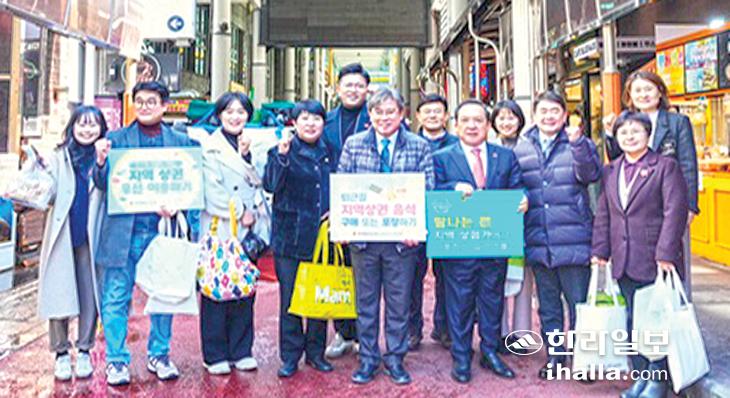 제주도의회 보건복지안전위원회(위원장 현길호)는 19일 지역경제 활성화를 위해으로 '서귀포매일올레시장'을 방문, 시장 내 식당에서 시사를 하고 지역특산물을 구매하는 등 지역 상권 살리기에 동참했다.