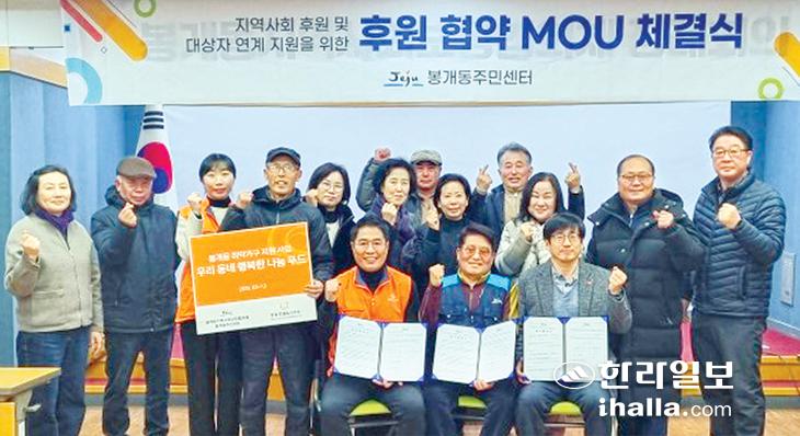 제주시 봉개동지역사회보장협의체(공동위원장 홍원기·김형준)는 지난 17일 봉개동주민센터에서 한화호텔앤드리조트(주) 제주사업본부와 지역사회 후원협약을 체결했다.