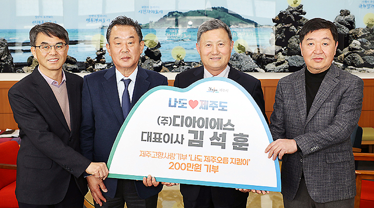 제주시는 20일 (주)디아이에스(대표이사 김석훈)로부터 고향사랑기부금 200만원을 기탁받았다.