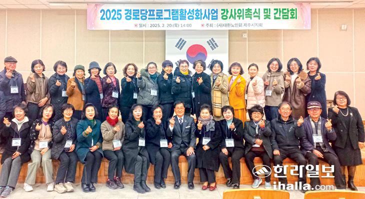 사)대한노인회 제주시지회(회장 문준식)는 지난 20일 지회 다목적동에서 '2025 경로당활성화프로그램' 강사 37명에게 강사 위촉장을 수여하고 간담회를 진행했다.