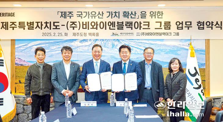 제주도는 25일 비와이엔블랙야크 그룹(회장 강태선)과 국가유산 가치 확산을 위한 업무협약을 체결했다.