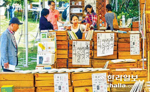 지난 2017년 제주에서 처음 열렸던 '한국지역도서전'. 사진은 그해 5월 25일 한라도서관 야외에서 도서전이 펼쳐지고 있는 모습이다. 한라일보 DB