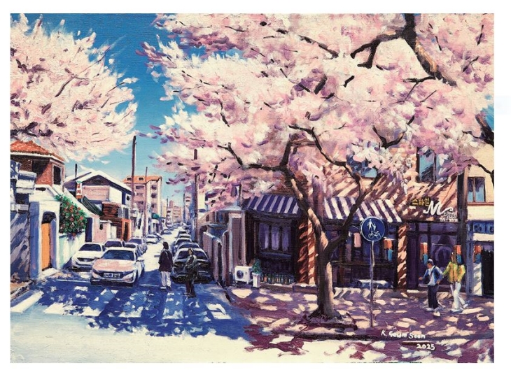 내달 6일까지 이어지는 전시에는 회원 33명의 유화, 수채화 등 작품 33점이 선보인다. 벚꽃이 만개한 제주시 전농로와 비양도, 성산포구, 속골해변 등에서 마주한 영롱한 순간을 화폭에 펼쳐냈다. 길과 산에서, 바다와 숲에서 전하는 계절의 소리도 눈으로 만나게 한다.