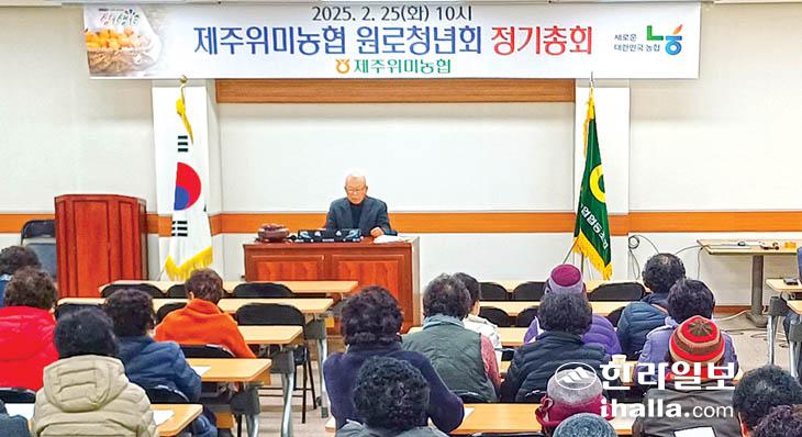 제주위미농협 원로청년회(회장 현상국)는 지난 25일 위미유통센터 회의실에서 회원 122명이 참석한 가운데 원로청년회 정기총회를 개최했다. 이날 수지결산 보고, 임원 선출, 사업계획 및 수지예산이 심의·의결됐다.