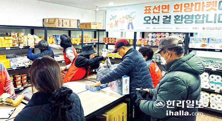 서귀포시 표선면(면장 강현호)은 지난 25일 표선면지역사회보장협의체(위원장 현소순)에서 주관하는 지역 내 취약가구를 위한 생필품 무료나눔 행사인'행복나눔 희망마켓'을 운영했다.