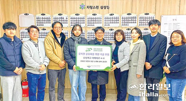 삼성여고(교장 고성혁) 데메테르 4-H(지도교사 김경희)는 최근 제주곶자왈공유화재단(이사장 김범훈)에 공유화 기금을 기부하며 곶자왈 보전에 앞장섰다.