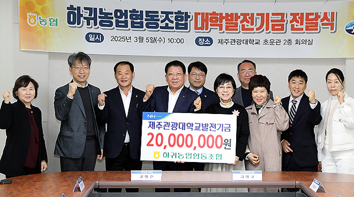 제주시 하귀농협(조합장 강병진)은 5일 제주관광대학교(총장 김성규) 발전기금으로 2000만원을 기탁했다.