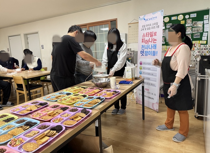 천사나래주간활동센터는 시설을 이용하는 성인발달장애인들을 대상으로 푸드스타일 교육과 실습 프로그램을 운영했다. 이날 과자와 빵, 생크림을 이용해 만든 '과자 궁전'은 주변 이웃들과 함께 나눠 시식하며 의미를 더했다.