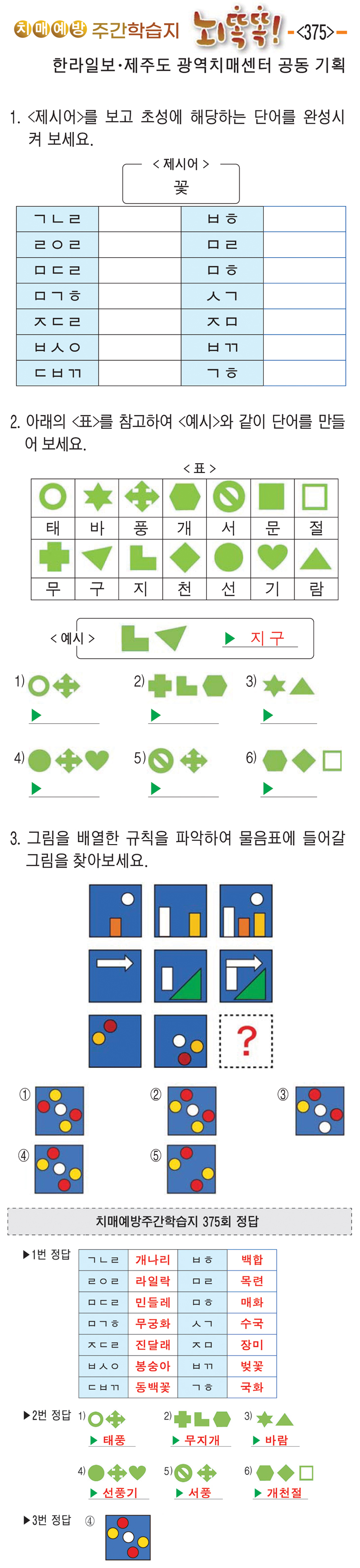 [치매예방주간학습지 뇌똑똑] (375)