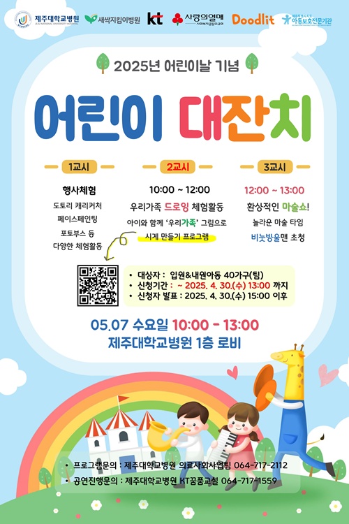 [한라일보] 제주대학교병원이 어린이날을 포함, 5월 가정의달을 맞아 다채로운 행사를 마련한다.