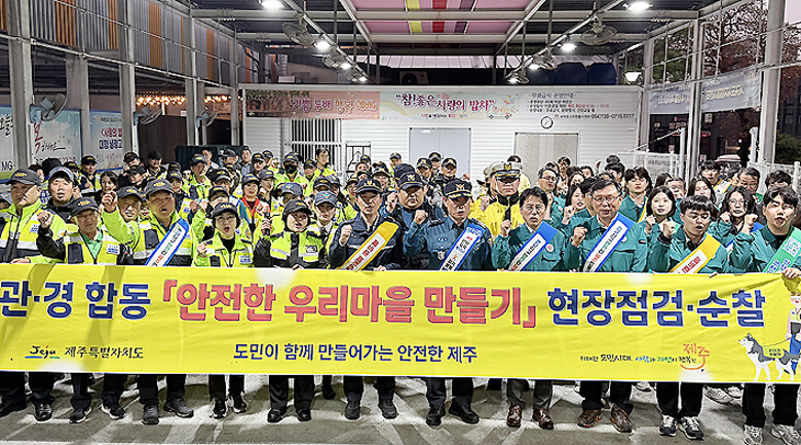 제주도는 '안전한 우리 마을 만들기' 캠페인의 일환으로 지난 1일 서귀포매일올레시장과 이중섭거리 일원에서 민·관·경 합동 현장 점검과 순찰을 전개했다.
