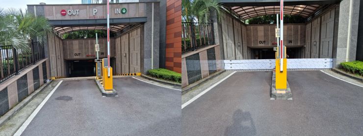 공동주택 지하주차장에 물막이판을 설치하기 전(왼쪽)과 설치 후 모습. 서귀포시 제공