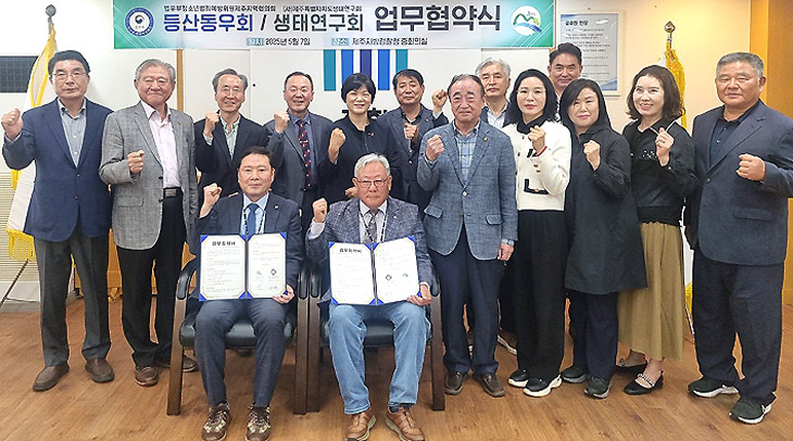 법무부 청소년범죄예방위원 제주지역협의회(회장 고영두) 등산동우회(회장 김두평)는 지난 7일 제주지방검찰청 중회의실에서 (사)제주특별자치도생태연구회(회장 김종광)와 업무협약식을 진행했다.