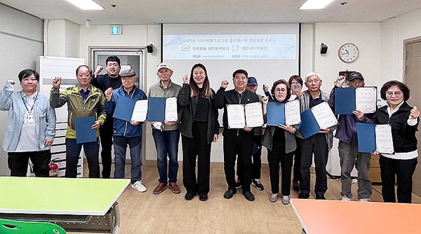 [한라일보] 제주시니어클럽(관장 김효의)은 7일 제주시니어클럽 교육장에서 5060취업프로그램으로 진행된 클린매니저양성과정 수료식을 진행했다.