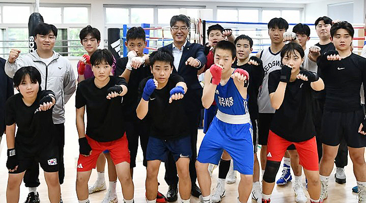신진성 제주특별자치도체육회장은 지난 14일 제54회 전국소년체육대회를 앞둔 제주 여자축구 초등부와 유도·복싱·씨름 선수단을 찾아 격려하고 최선을 다해줄 것을 당부했다.
