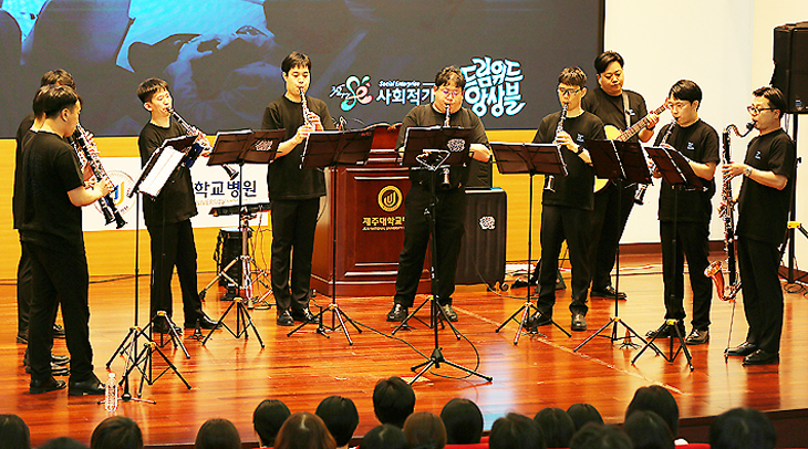 제주대학교병원(병원장 최국명) 발달장애인거점병원·행동발달증진센터는 최근 병원 대강당에서 발달장애인 예술단체 '드림위드앙상블' 초청공연을 마련했다.