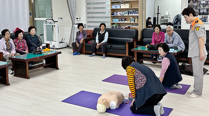서귀포시 영천동(동장 오창림)은 지난 20일 법호촌노인회와 상효1동노인회 어르신 30여 명을 대상으로 마을경로당에서 심폐소생술 등 시민안전교육을 실시했다.