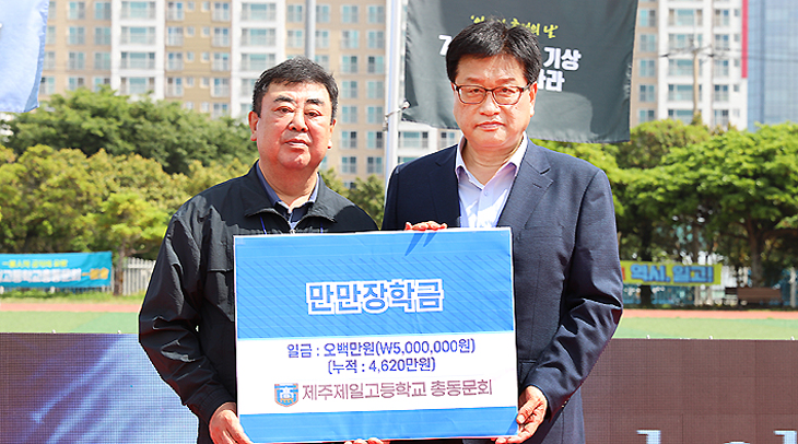 제주제일고등학교(교장 고동현)는 지난 18일 본교 대운동장에서 열린 '제44회 일고인 축제의 날' 행사에서 총 1000만원의 장학금을 기탁받았다고 21일 밝혔다.