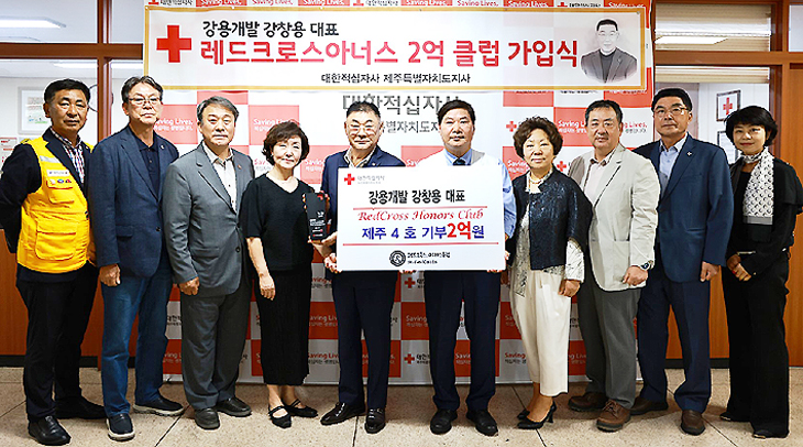 [한라일보] 강창용 (주)강용개발 대표는 지난 24일 대한적십자사제주특별자치도지사(회장 정태근) 레드크로스 아너스클럽 법인 4호 2억 클럽에 가입했다.