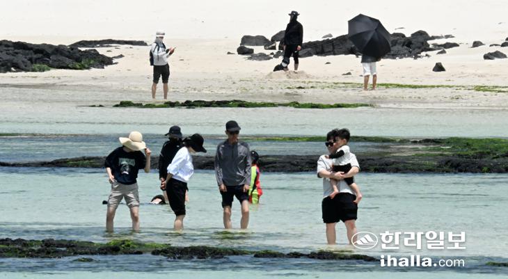 제주 바다를 즐기는 관광객들. 한라일보DB