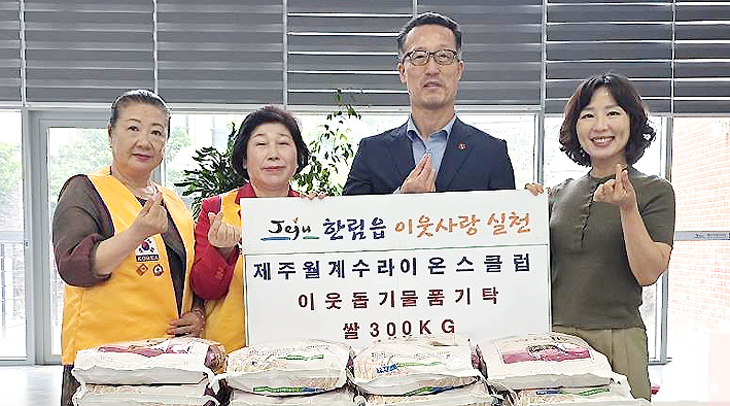 제주월계수라이온스클럽(회장 신정숙)은 지난 23일 제주시 한림읍(읍장 김동옥)에 지역 내 어려운 이웃에게 전달해 달라며 사랑의 쌀(10㎏) 30포를 기탁했다.
