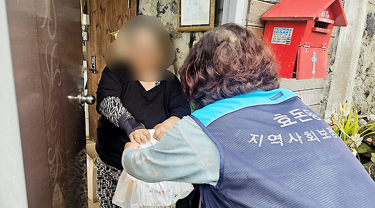 서귀포시 효돈동지역사회보장협의체(공동위원장 김경미·이명소)는 지난 24일 효돈동희망나눔캠페인 특화사업인 '사랑의 밑반찬 두드림 사업'의 일환으로 지역 내 저소득 50가구에게 식료품을 전달했다.