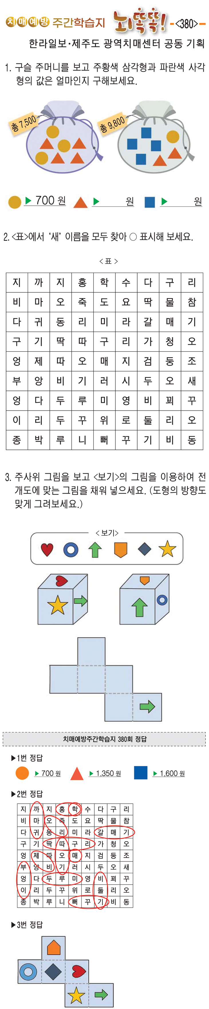 [치매예방주간학습지 뇌똑똑] (380)