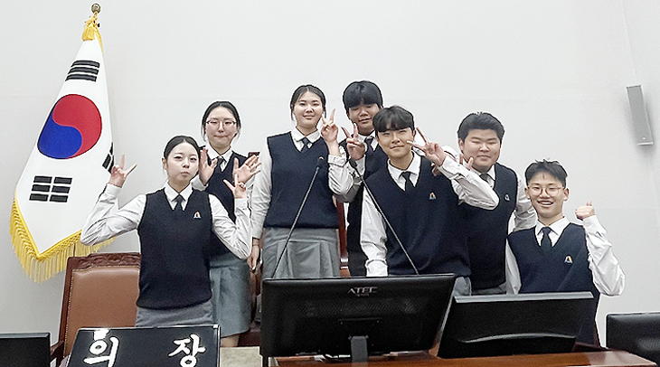 학생들은 '기후 변화에 따른 제주 클린로드 시스템 도입에 관한 건의안'을 바탕으로 본회의에서 찬반 토론을 벌였다.