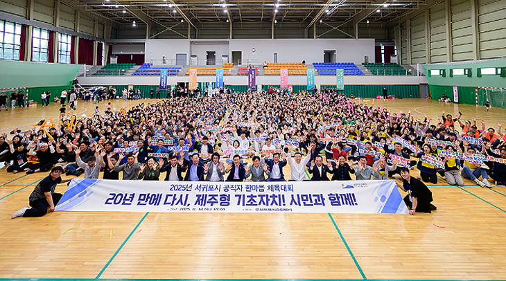 서귀포시는 지난 14일 공천포전지훈련센터에서 공직자와 가족, 도의원 등 1000여 명이 참석한 가운데 '2025년 서귀포시 공직자 한마음 체육대회'를 개최했다.