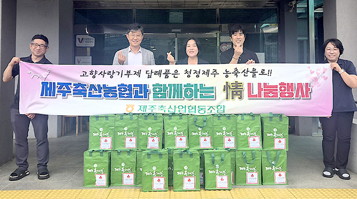 제주축산농협(조합장 천창수)은 지난 10일 제주시 영평동 소재 제주장애인요양원(원장 정석왕)을 방문해'情(정) 나눔행사'를 실시했다.