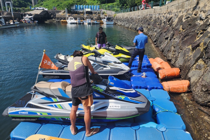 서귀포해경이 서귀포시 수상레저사업장을 대상으로 안전점검을 실시하고 있다. 서귀포해양경찰서 제공.