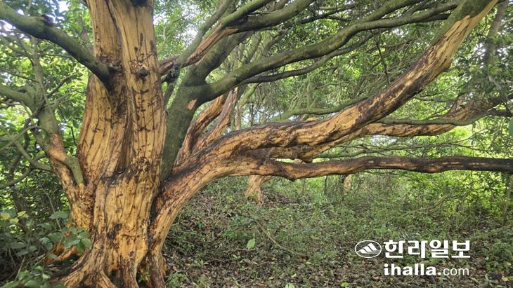 서귀포시 표선면 성읍리 임야에서 후박나무 43그루가 껍질이 벗겨진 채 발견됐다. 제주자연의벗 제공