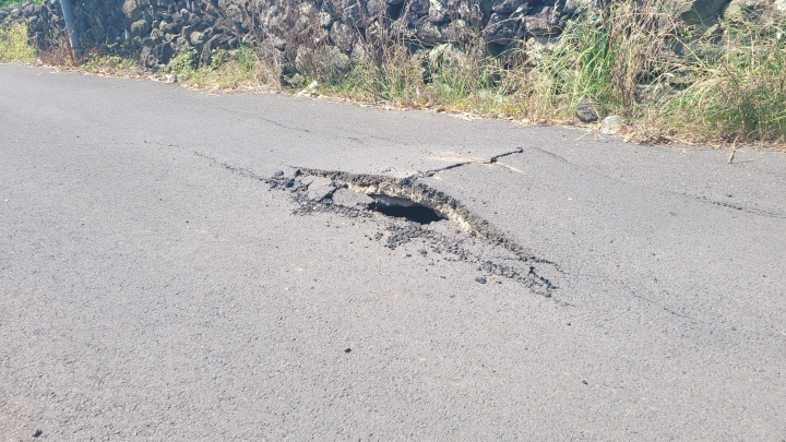 26일 오전 9시 42분쯤 제주시 화북2동의 한 도로에서 가로 1m, 세로 2m 규모의 땅꺼짐이 발생했다. 제주소방안전본부 제공