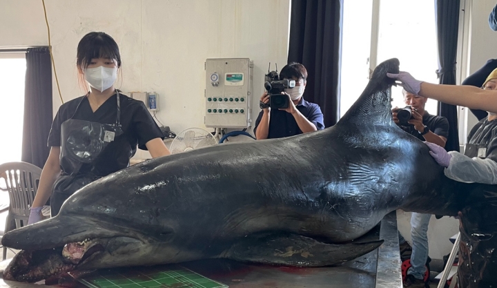 30일 김상화 강원대학교 수의과대학 교수와 김병엽 제주대학교 해양과학대학 교수가 주관한 남방큰돌고래 ‘턱이’의 부검이 제주시 한림읍에 위치한 한국수산자원관리공단 제주본부에서 진행됐다.