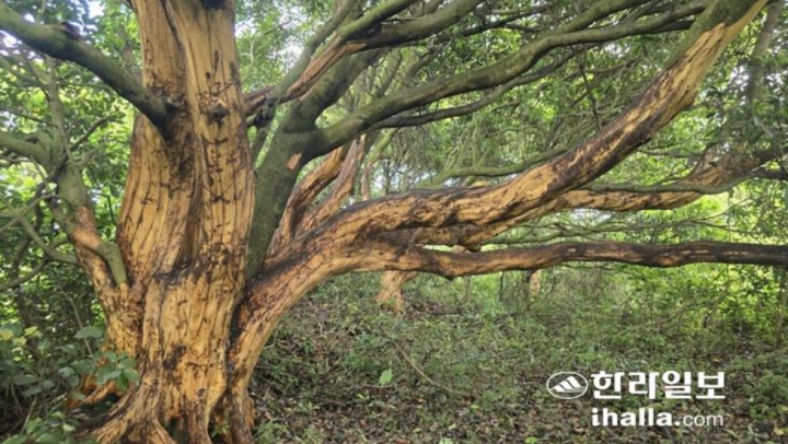서귀포시 표선면 성읍리 임야에서 후박나무 100여 그루의 껍질을 벗긴 50대 자치경찰에 붙잡혔다. 제주자연의벗 제공