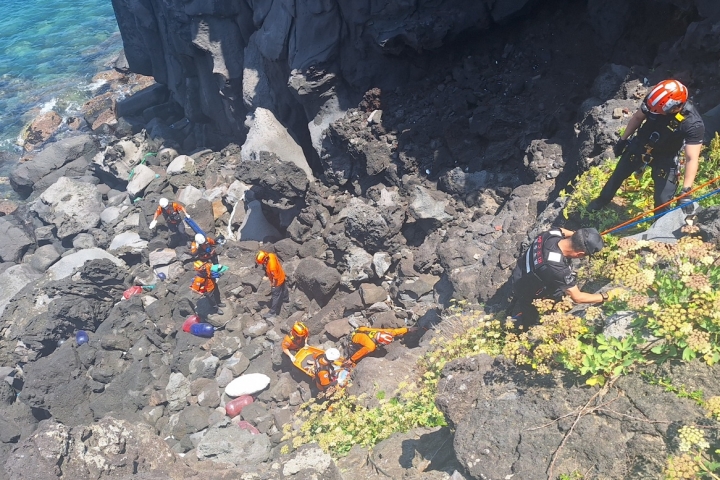 3일 오전 11시 20분쯤 제주시 애월읍 고내리에서 60대 여성 A씨가 절벽 10m 아래로 추락했다. 제주소방안전본부 제공