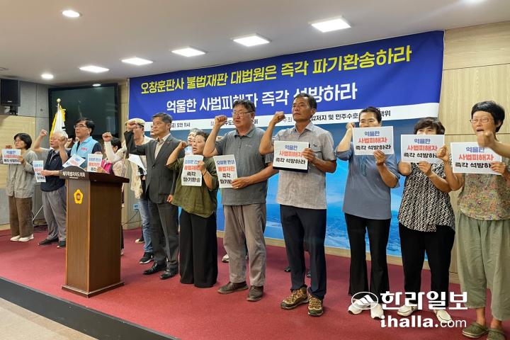 대책위는 “제주지방법원 A판사가 불법재판에 대한 논란이 인 가운데 대법원이 7월 3일로 예정된 선고를 재판 하루 전 갑자기 연기했다”며 “아직 대법원이 사건을 잘 들여다보지 못했다면 이제라도 재판과정의 불법과 반인권·반헌법적인 부분을 면밀히 살펴 올바른 판결을 해야 한다”고 했다.