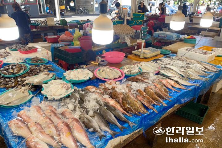 7일 오전 제주시민속오일시장의 한 수산물 상회. 생선이 상하지 않게 얼음이 가득 채워져 있다.