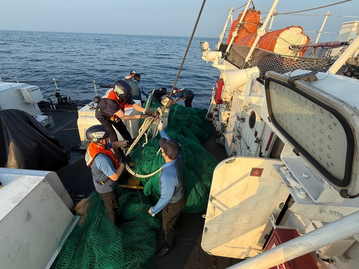 제주해경이 선박 운항을 방해하는 폐그물을 수거하고 있다. 제주해양경찰서 제공