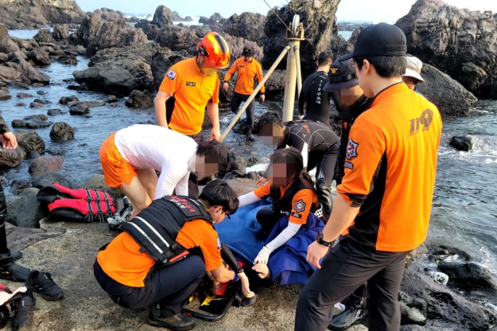 이날 오후 5시 54분쯤 서귀포시 대포동의 한 해변에서 40대 여성 A씨가 물에 빠졌다는 신고가 접수됐다. 제주소방안전본부 제공