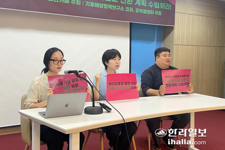 기후해양정책연구소 코리와 공익법센터 어필은 10일 오전 제주도의회 도민카페에서 기자회견을 열고 ‘한국 바이오연료 정책의 지속가능성 평가와 개선 과제’를 발표했다.