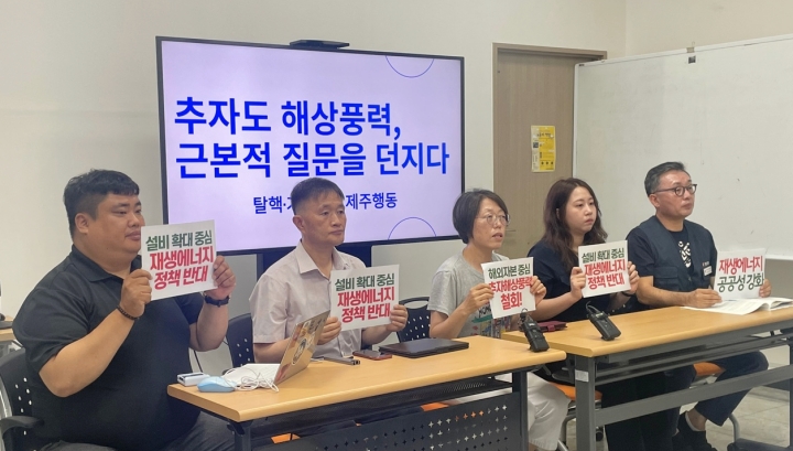 탈핵·기후위기제주행동(이하 제주행동)은 11일 민주노총 제주본부에서 기자회견을 열고 대통령실 공공갈등조정비서관에게 추자도 해상풍력발전사업에 대한 진정서를 제출했다고 밝혔다.