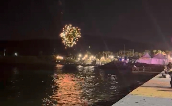 지난 14일 밤 제주시 조천읍 함덕해수욕장에서 폭죽놀이가 이뤄지고 있다. 독자 제공