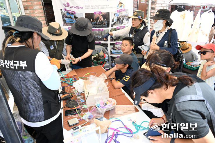 26일 개막한 '산방산·용머리 해안 지질 트레일' 특설무대가 마련된 플레이사계 지오단길에서 체험 프로그램이 진행되고 있다. 강희만기자