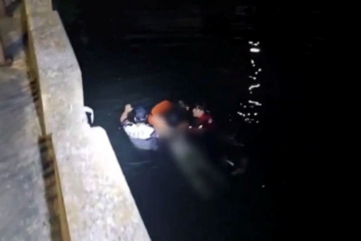지난 27일 밤 11시 25분쯤 제주시 한림읍 한림항에서 해경이 물에 빠진 30대 관광객을 구조하고 있다. 제주해양경찰서 제공
