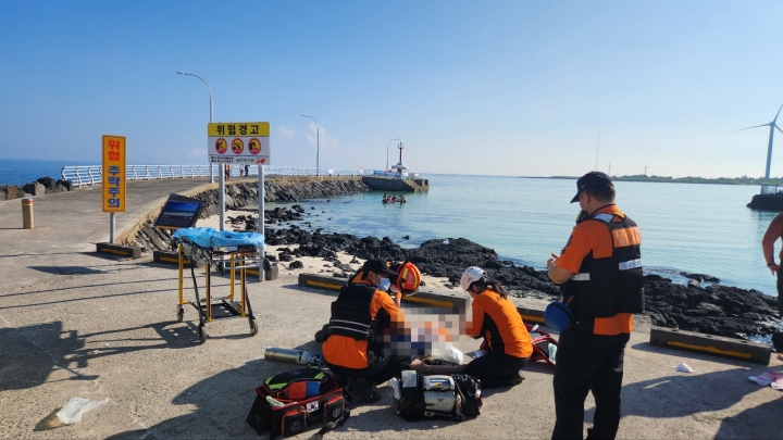 20일 오전 8시쯤 제주시 구좌읍 김녕세기알해변에서 40대 남성 1명곽 30대 남성 1명이 구조됐다. 제주소방안전본부 제공