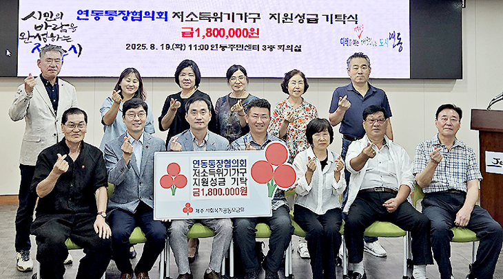 이번 성금은 연동통장협의회 회장과 회원들이 십시일반 모은 것으로, 연동 내 생계유지가 곤란한 저소득 위기가구의 의료비·생계비 등으로 지원될 예정이다.